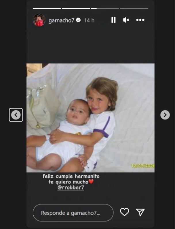 وقد خاض جارناتشو 18 مباراة تنافسية في الدوري الإنجليزي وسجل هدفين وصنع هدفين، ويدرك الشياطين الحمر اهتمام الفريق الإسباني وهذا هو السبب في أنهم يريدون إنهاء تجديده في أقرب وقت ممكن، ومع ذلك فقد ترك اللاعب الأرجنتيني لريال مدريد هدية صغيرة على حسابه الرسمي بتطبيق “إنستجرام” الخاص به لتهنئة شقيقه بعيد ميلاده كلا الأخوين يرتديان قميص ريال مدريد في الصورة.