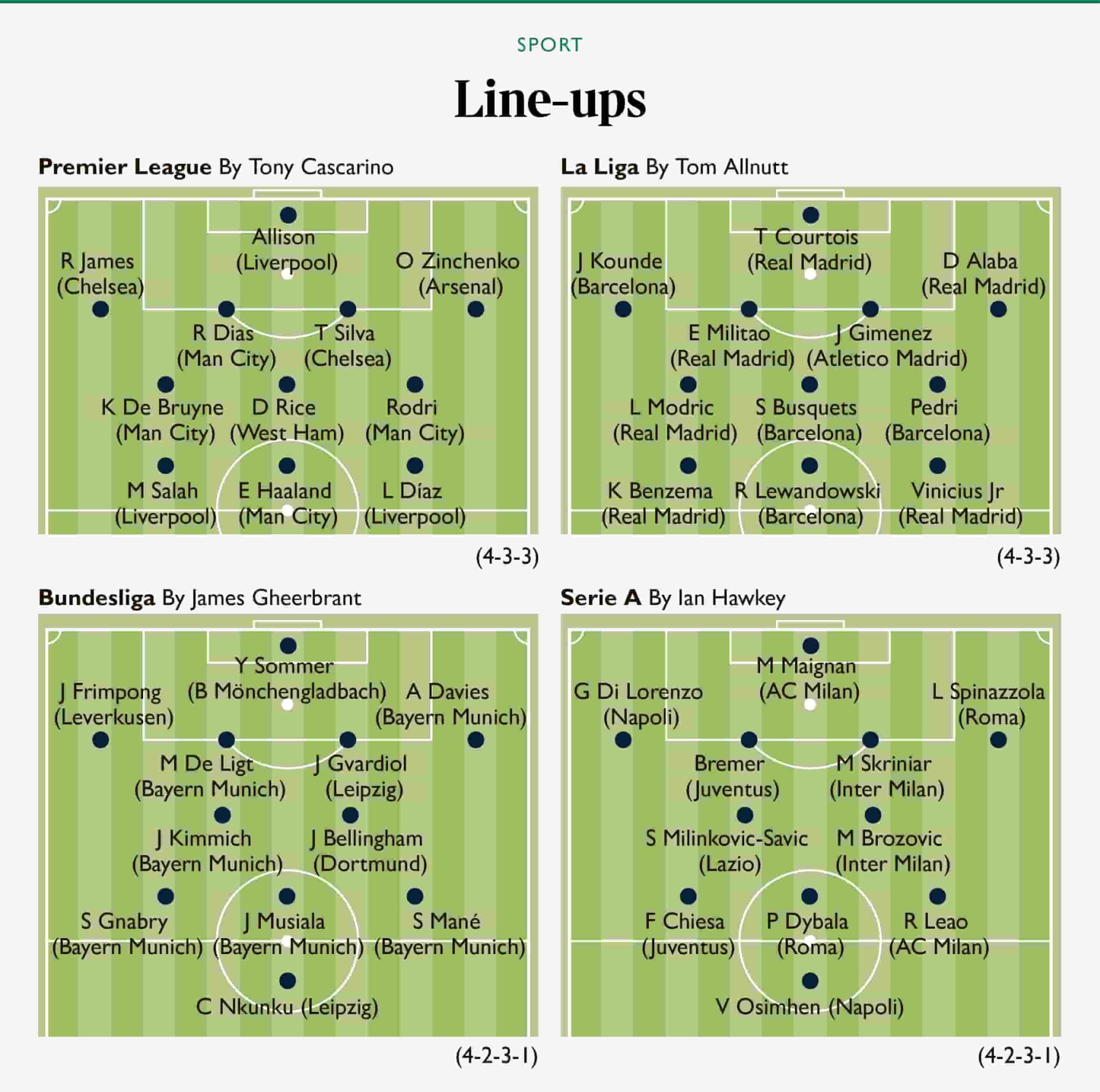 وأضافت الصحيفة أن المباريات قد تقام في أكثر من دولة أوروبية وخلال أشهر الصيف أو العطلة الصيفية، وأكد التقرير أن الفكرة تلقى رواجا من أجل زيادة أعداد المشاهدين وكذلك تعزيز عوائد حقوق البث، ونشرت الصحيفة التشكيلات المحتملة للدوريات الكبرى حال إقامة مباراة كل النجوم.