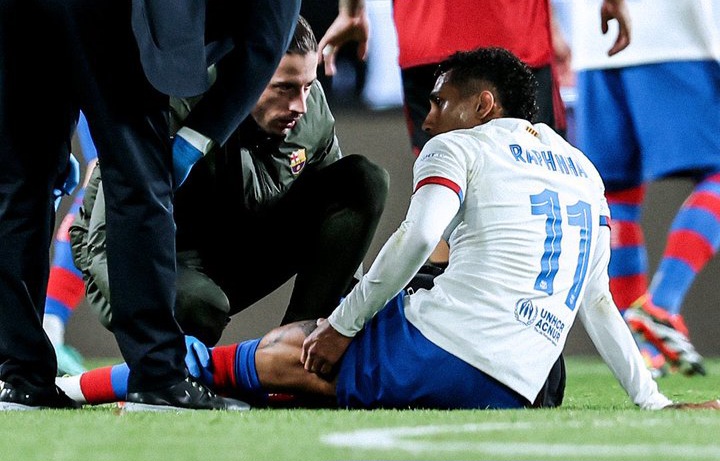 تعرض النجم البرازيلي “رافينيا” جناح نادي برشلونة لإصابة قوية خلال مباراة فريق برشلونة ضد أوساسونا الجارية الآن في منافسات نصف نهائي بطولة كأس السوبر الإساني.