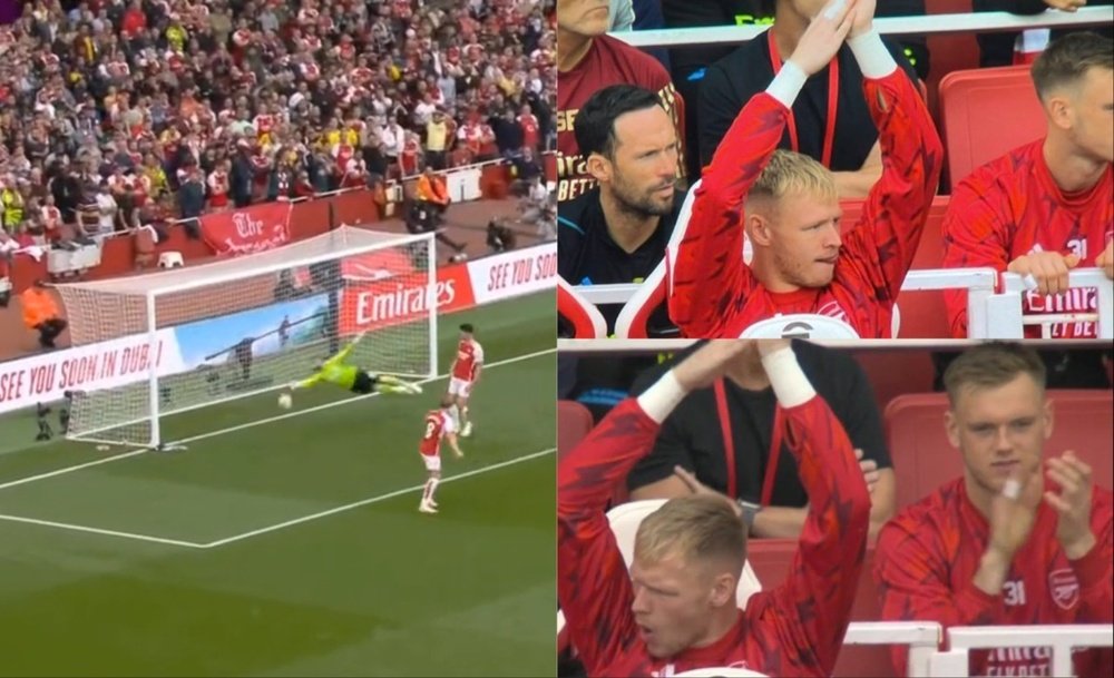 Ramsdale’s reaction to that Raya save against Tottenham pic.twitter.com/R9oCsKCpyw