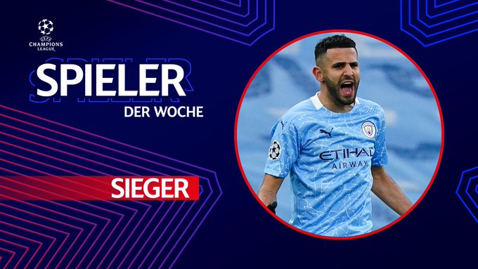 وقال موقع الإتحاد الأوروبي إن رياض محرز نجم مانشستر سيتي حصد الجائزة بعد إحراز هدفي فوز فريقه على باريس سان جيرمان وسجل محرز ثنائية فريقه في شباك سان جيرمان بملعب “الاتحاد” بعد أن ساهم أيضًا بتسجيل هدف الفوز لفريقه في مباراة الذهاب بحديقة الأمراء.