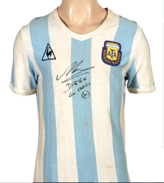 يتم عرض حاليا أول قميص الأسطورة الأرجنتيني الراحل (دييجو مارادونا) مع منتخب بلاده للبيع في مزاد علني وقد شهد هذا القميص ظهوره الأول في كأس العالم عام 1982.