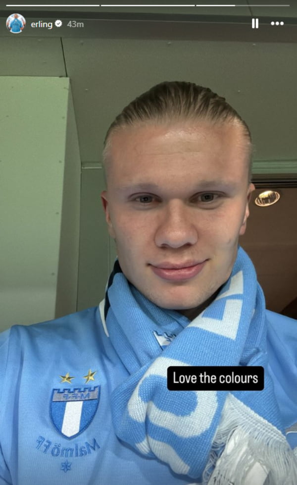 وخلال موقع “إنستجرام” نشر إيرلينج هالاند صورة له وهو يرتدي قميص فريق مالمو السويدي وصورة أخرى من المدرجات أثناء المباراة، وكان هداف السيتي قد حضر مباراة مالمو ضد نادي جوتنبورج ضمن منافسات الدوري السويدي والتي انتهت بفوز مالمو بنتيجة 2-1.