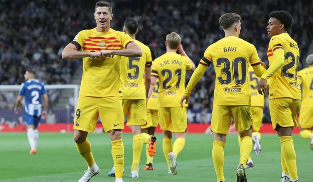 توج نادي برشلونة رسميًا بطلاً للدوري الإسباني 2022/2023، بعدما فاز علي إسبانيول بنتيجة 4/2، في المباراة التي جمعتهما علي ملعب “باور 8” في الجولة 34 من الليجا.