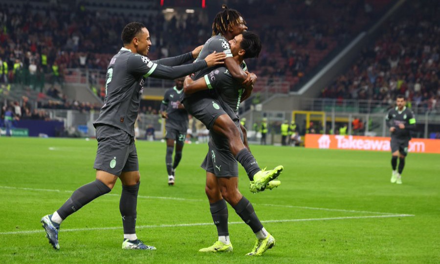 ميلان يفوز علي كلوب بروج بثلاثية في دوري أبطال أوروبا