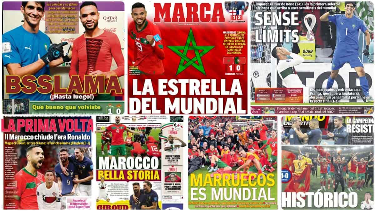 تصدرت عناوين أغلفة الصحف العالمية بعد تأهل منتخب المغرب علي حساب نظيره منتخب البرتغال إلي دور نصف نهائي كأس العالم 2022 أمس بنتيجة 1/0.