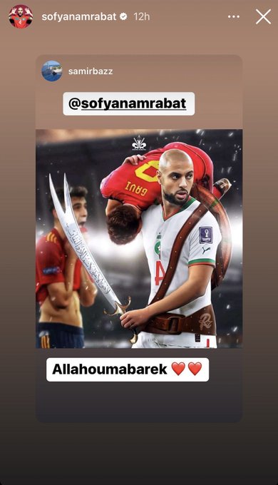 شارك لاعب وسط المنتخب المغربي “سفيان أمرابط” الذي شارك أمس في فوز المغرب على إسبانيا في دور الـ16 مع الجماهير في سخرية فكاهية من لاعبي المنتخب الإسباني بعد خروجهم من المونديال.