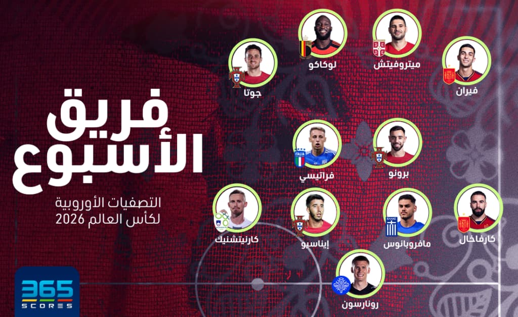 ونشرت شبكة “365scores” التشكيلة المثالية للجولة الخامسة والسادسة في تصفيات يورو 2024″، والتي شهدت وجوج المهاجم الصربي ألكسندر ميتروفيتش، ووجود ثلاثي البرتغال برونو فيرنانديز وديوجو جوتا وجونزالو إيناسيو، بالإضافة إلى المهاجم البلجيكي روميلو لوكاكو، الذي سجل ثنائية في خماسية بلجيكا أمام إستونيا.