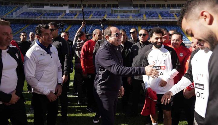 الرئيس السيسي يزور معسكر منتخب مصر قبل أمم إفريقيا 2023