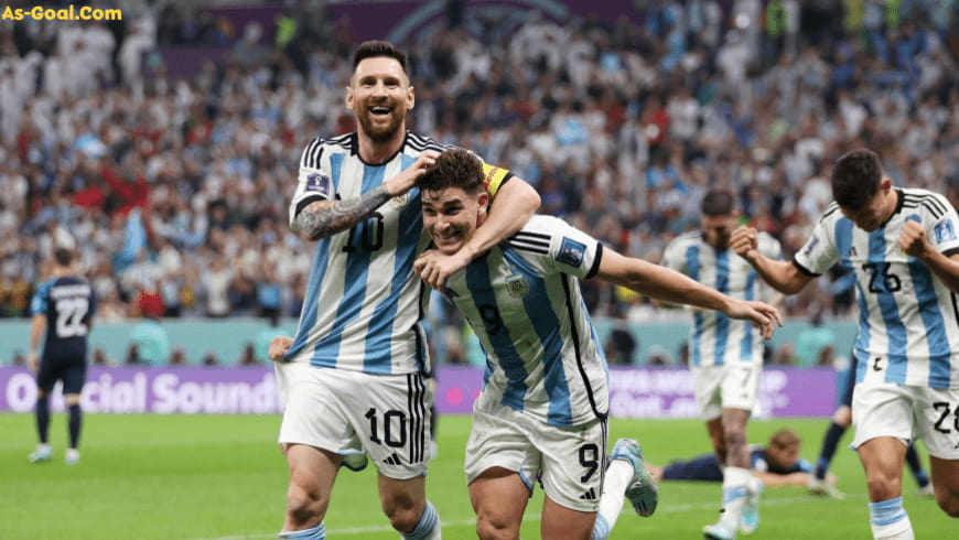 وقد أحرز النجم ليونيل ميسي الهدف الأول لمنتخب بلاده في الدقيقة 34 من ركلة جزاء، بينما أضاف المهاجم ألفاريز الهدف الثاني لمنتخب الارجنتين في الدقيقة 39، من هجمة مرتدة سريعة، وعزز تقدم منتخب الأرجنتين بالهدف الثالث والثاني له في المباراة المهاجم ألفاريز في الدقيقة 69،بتمريرة رائعة من ليونيل ميسي.