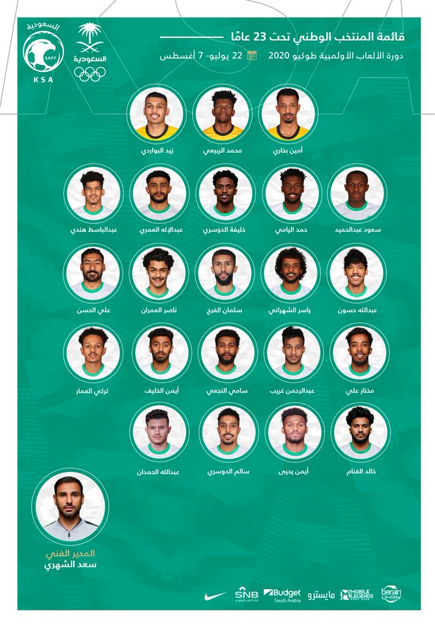أعلن المنتخب السعودي تحت 23 عاماً يوم الثلاثاء القائمة النهائية للاعبين المشاركين في أولمبياد طوكيو 2020 والتي تبدأ منافساتها أواخر الشهر الجاري.