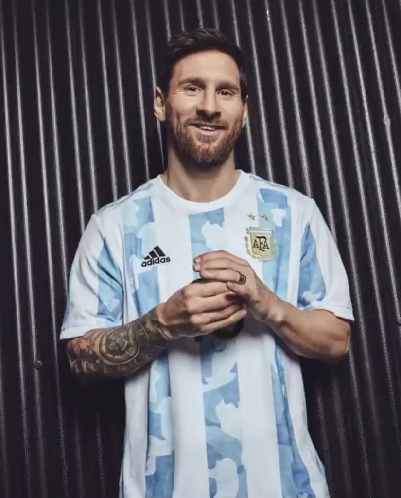 وتصدر الأسطورة الأرجنتيني ليونيل ميسي الحملة الدعائية لقميص منتخب الأرجنتين الجديد إستعدادًا لخوض مباريات تصفيات كأس العالم المقبلة ولم يختلف قميص منتخب الأرجنتين كثيراً عن الشكل الأساسي له بالخطوط البيضاء والسماوية العريضة من انتاج شركة اديداس للملابس الرياضية.