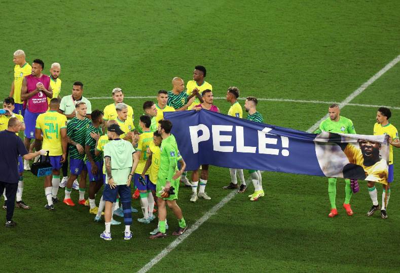 وبعد اطلاق صافرة النهاية احتفل لاعبو البرازل مع جماهيرهم بالتأهل وحملوا لافتة كبيرة تحمل صورة الاسطورة البرازيلية بيليه الذي كان قد وجه رسالة لهم قبل انطلاقة اللقاء وابلغهم انه سوف يتابع المواجهة من المستشفى حيث يعالج من سرطان القولون.