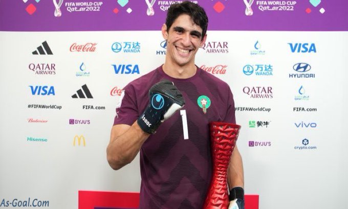 حصد النجم المغربي “ياسين بونو” حارس مرمي منتخب المغرب جائزة أفضل لاعب في مباراة المغرب وإسبانيا، بعد مستواه المميز خلال المباراة التي أقيمت اليوم الثلاثاء والتي أنتهت بفوز منتخب أسود الأطلس 3/0 بركلات الترجيح، ضمن منافسات دور الـ16 لبطولة كأس العالم قطر 2022.