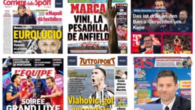 أبرز عناوين أغلفة الصحف الرياضية العالمية: “ريال مدريد يواجه ليفربول اليوم في الأنفيلد”