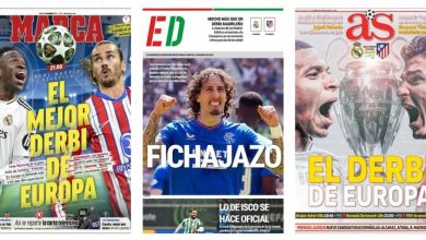 أبرز عناوين أغلفة الصحف الرياضية العالمية: “ريال مدريد أمام أتلتيكو مدريد اليوم”