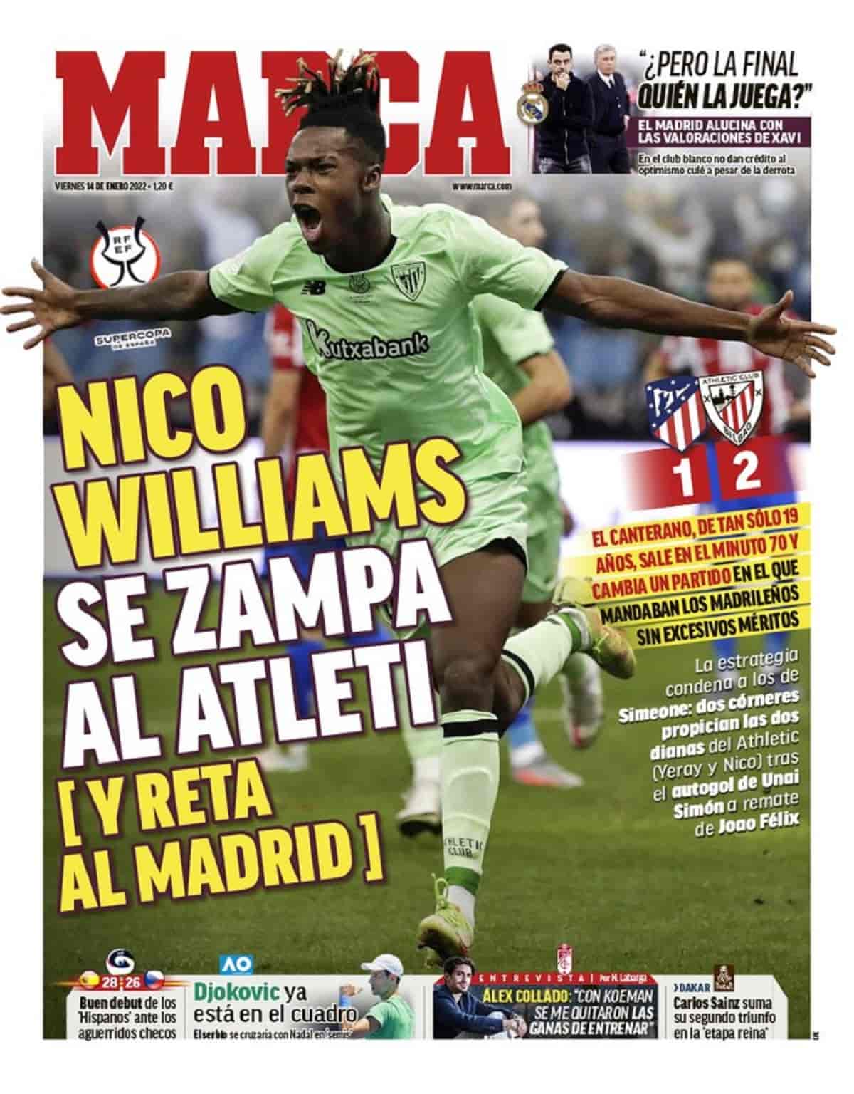 أبرز عناوين أغلفة الصحف الرياضية العالمية.. نيكو ويليامز يلتهم أتلتيكو مدريد