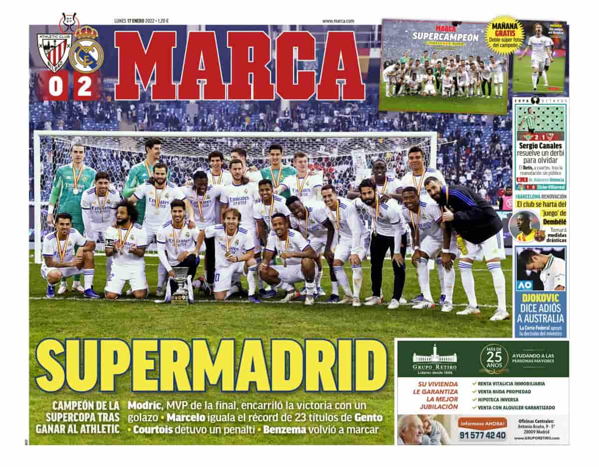 أبرز عناوين أغلفة الصحف الرياضية العالمية.. “ريال مدريد سوبر.. سوبر بطل”