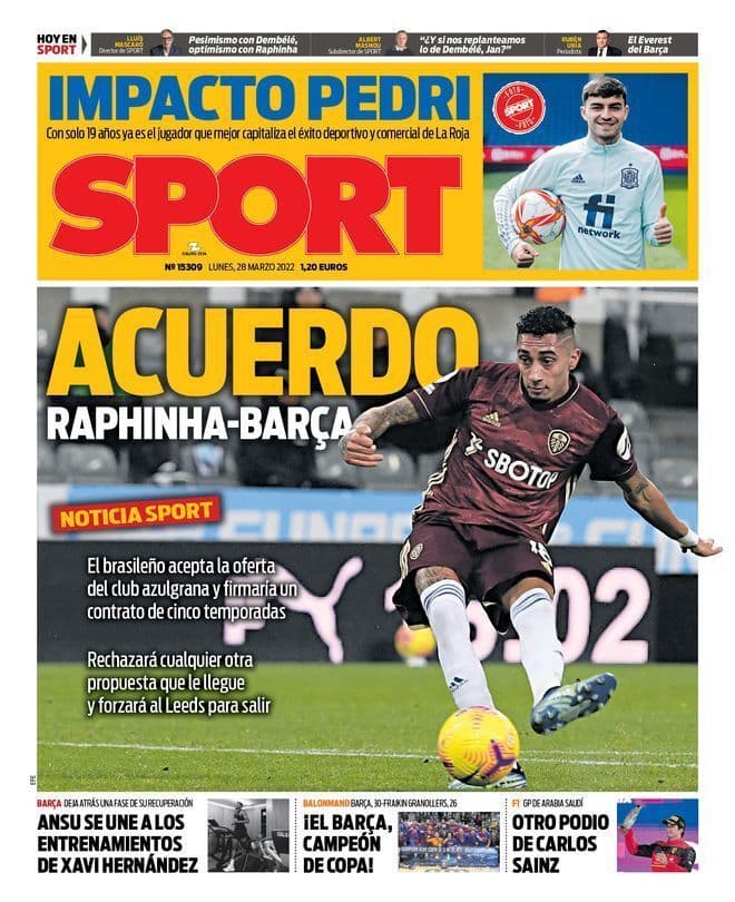 أبرز عناوين أغلفة الصحف الرياضية العالمية.. “إتفاق بين رافينيا وبرشلونة”