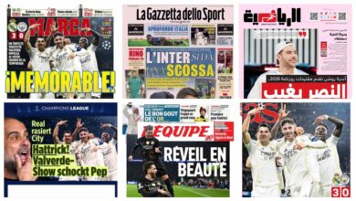 أبرز عناوين أغلفة الصحف الرياضية العالمية: “ريال مدريد الجريح في اختبار الشخصية”