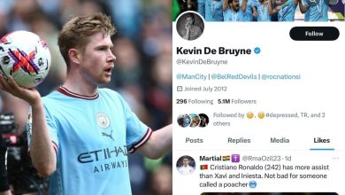 دي بروين يعطي إعجاباً لتغريدة يقارن فيها رونالدو بتشافي وإنييستا