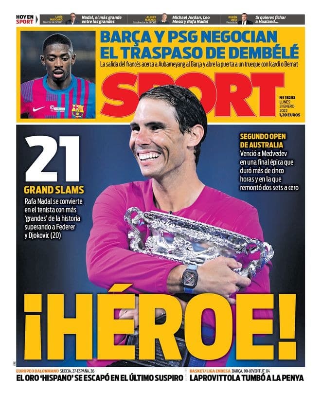 أبرز عناوين أغلفة الصحف الرياضية العالمية.. “رافائيل نادال البطل”