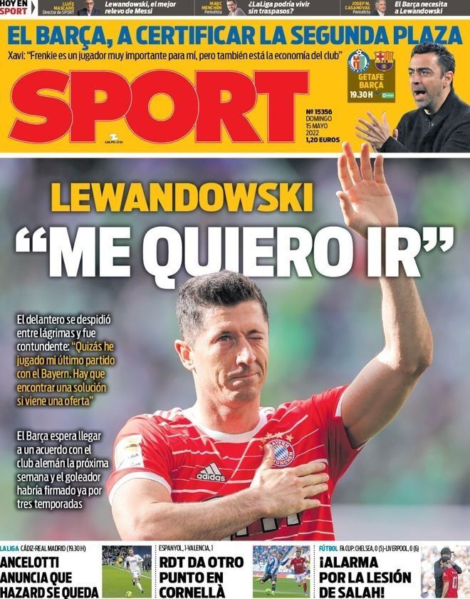 أبرز عناوين أغلفة الصحف الرياضية العالمية.. “ليفاندوفسكي: وداعاً بايرن ميونيخ”