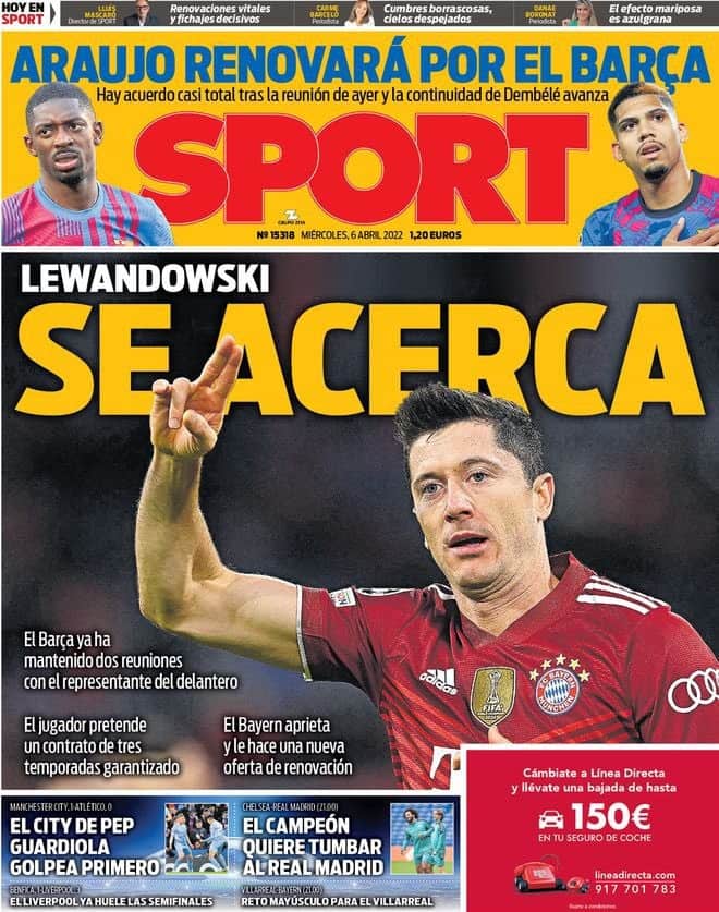 أبرز عناوين أغلفة الصحف الرياضية العالمية.. “برشلونة.. ليفاندوفسكي.. إنه يقترب”