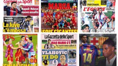 سلطت الصحف الرياضية العالمية اليوم الخميس 24 يوليو…